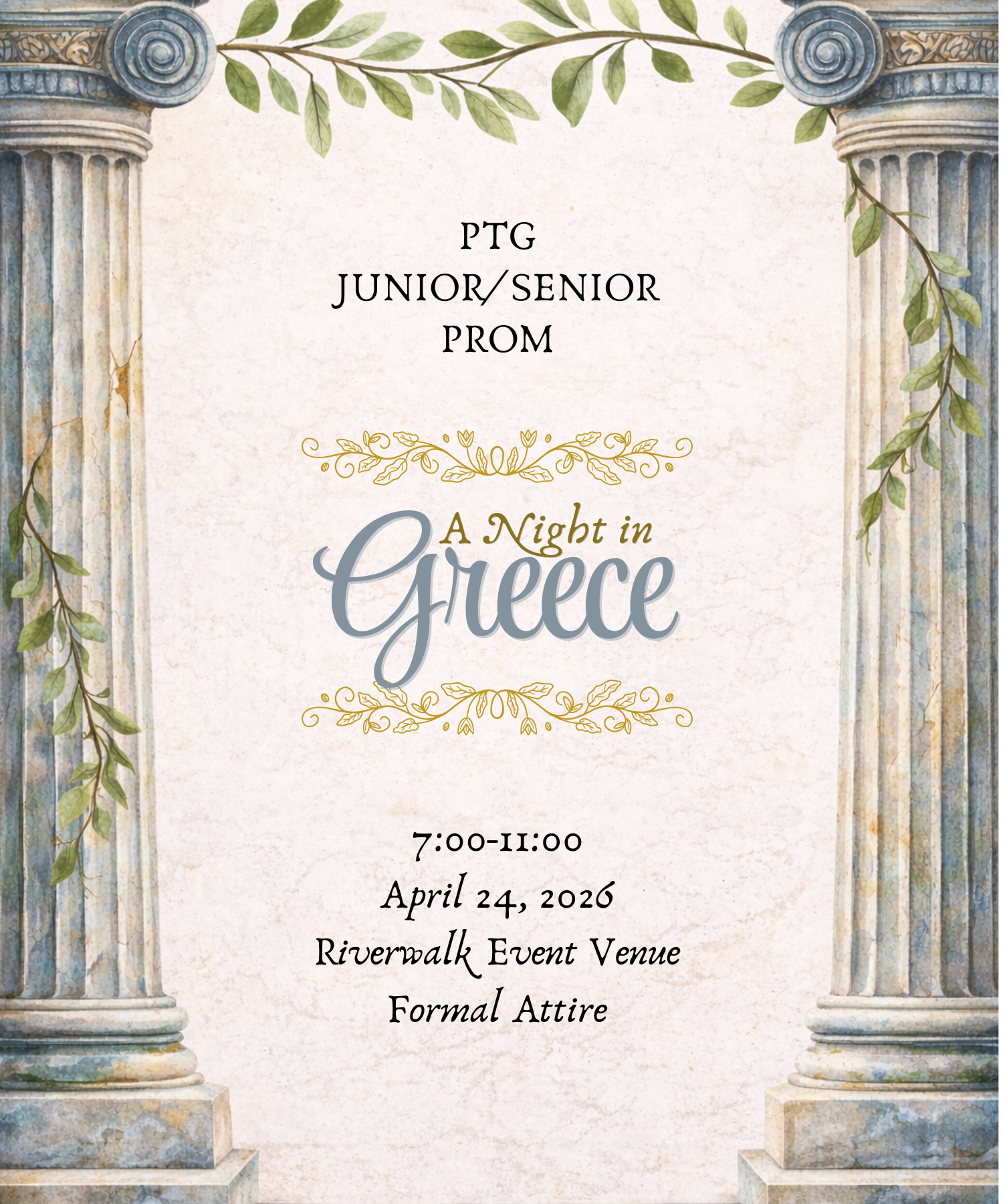Juniors, Seniors, and their guests are invited to an evening inspired by the beauty of Greece. Join us for dancing, light hors d’oeuvres, and a memorable night in a beautiful indoor/outdoor setting.